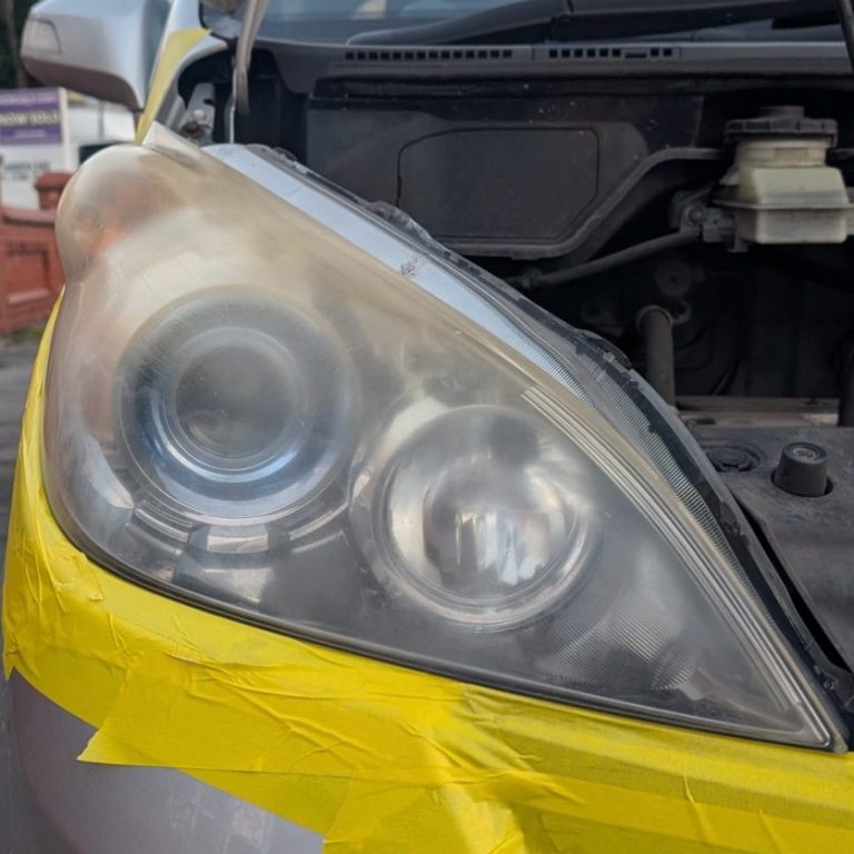 Headlight restoration is essential to remove cloudy, yellowed, or oxidized plastic,